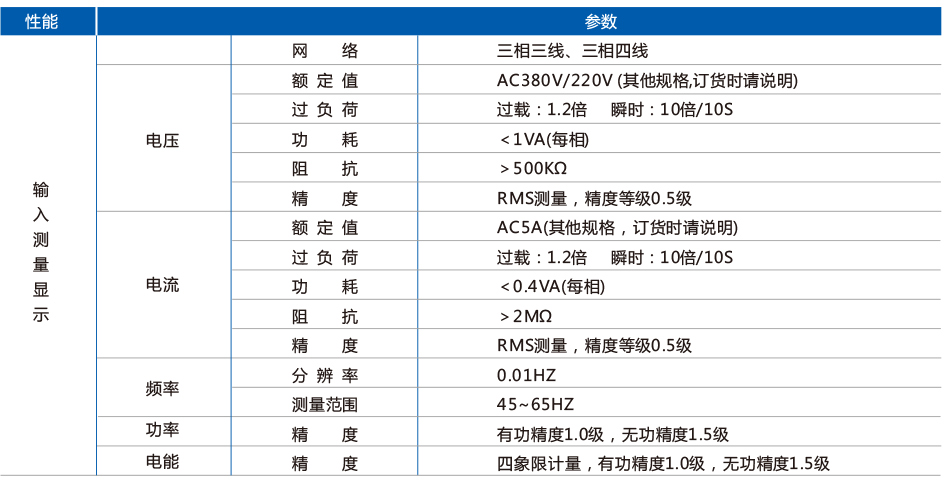 測(cè)量:三相電流、電壓、總有功功率、總無(wú)功功率、功率因數(shù)、總視在功率、頻率、分相有/無(wú)功功率、分相功率因