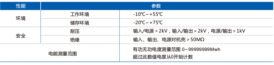 Measurement: three-phase phase voltage, line voltage, current, total active power, total reactive power, total power factor, total apparent power, active energy, and reactive energy.