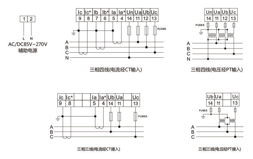 擴(kuò)展:可直接從電壓、電流互感器輸入信號(hào),現(xiàn)場可編程設(shè)置輸入?yún)?shù)變比。